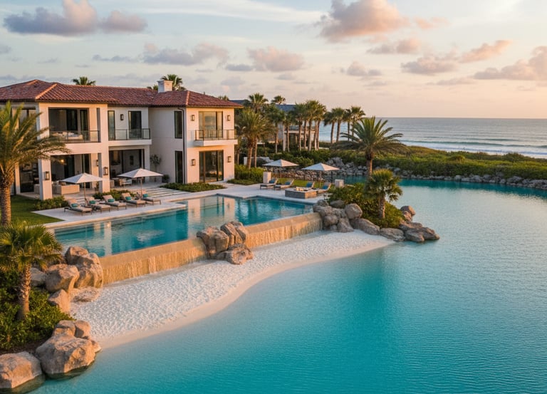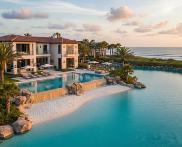 Crafting beach entry pools with imported epoxy stone and fresh global materials.